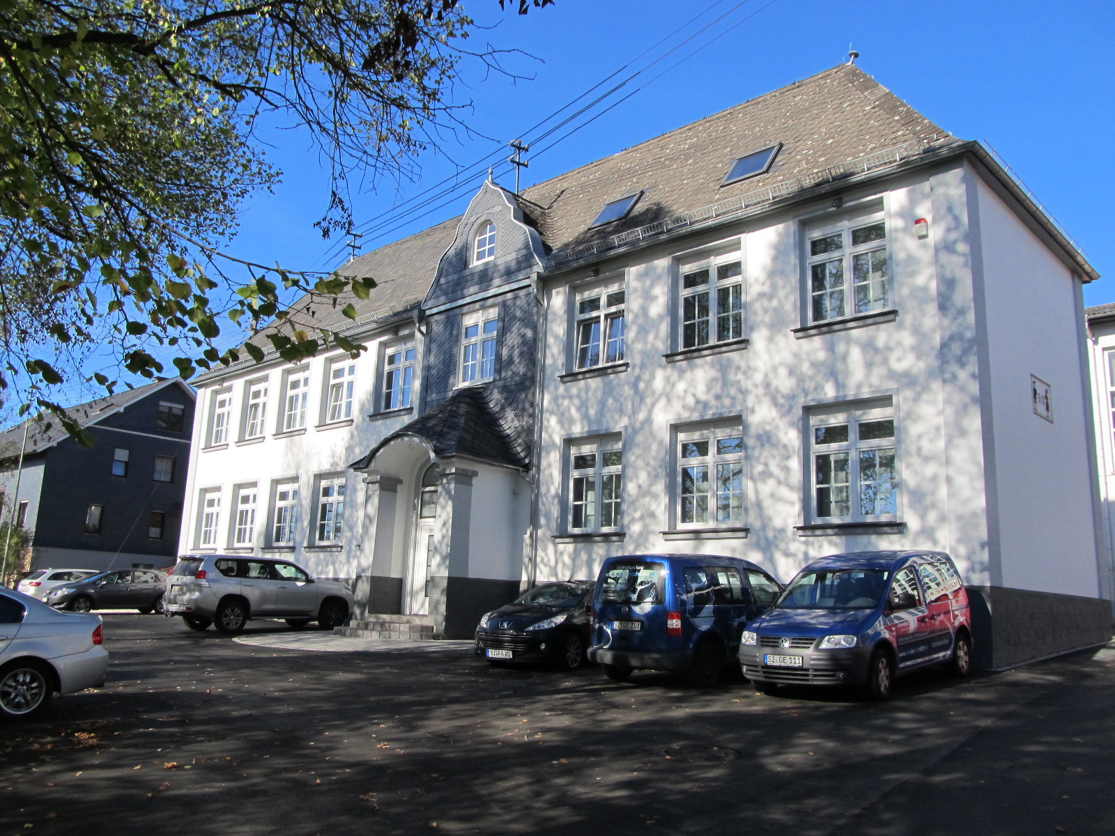 Das Gebäude liegt etwas erhöht zur Straße und ist über eine leicht ansteigende Einfahrt von der Hauptstraße aus anfahrbar.
