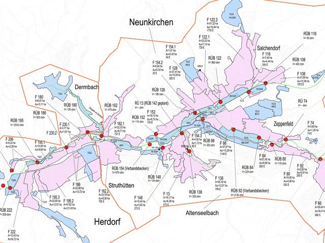 • Planung, Ausschreibung und Bauüberwachung verschiedener Mischwasser- und Regenwasserbehandlungsanlagen (RÜ, RÜB und RRB)